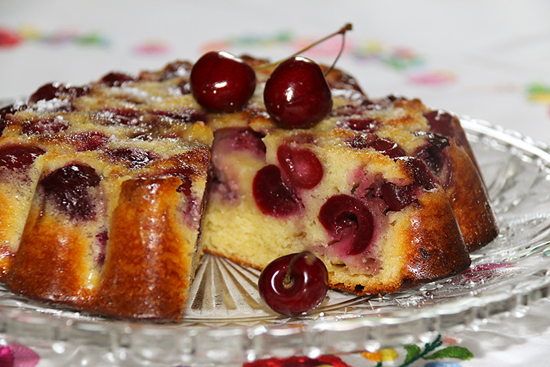 - fine de la kuirado, la ĉerizflano estas helbrune kolorigita, la interno estas bone kuirita sed ŝvelmola